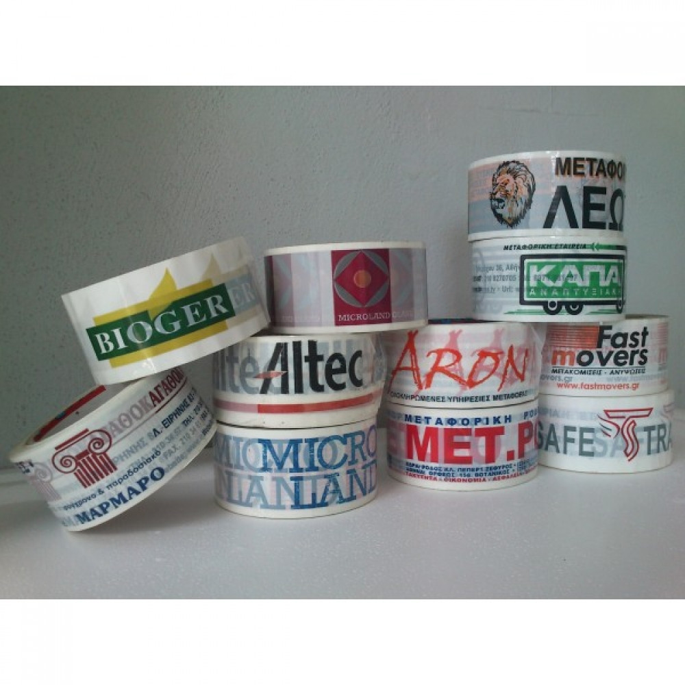 Υπάρχει η δυνατότητα εκτύπωσης λογοτύπου και στοιχείων εταιρίας, σε ταινίες συσκευασίας πολυπροπυλαινίου PP ή πολυβινυλίου PVC.